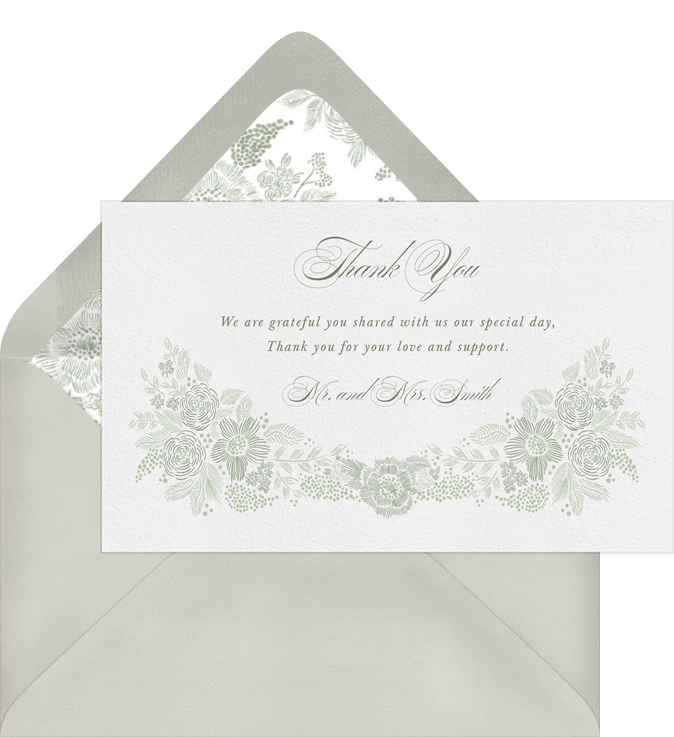 Romantic Linework Florals Thank You Note